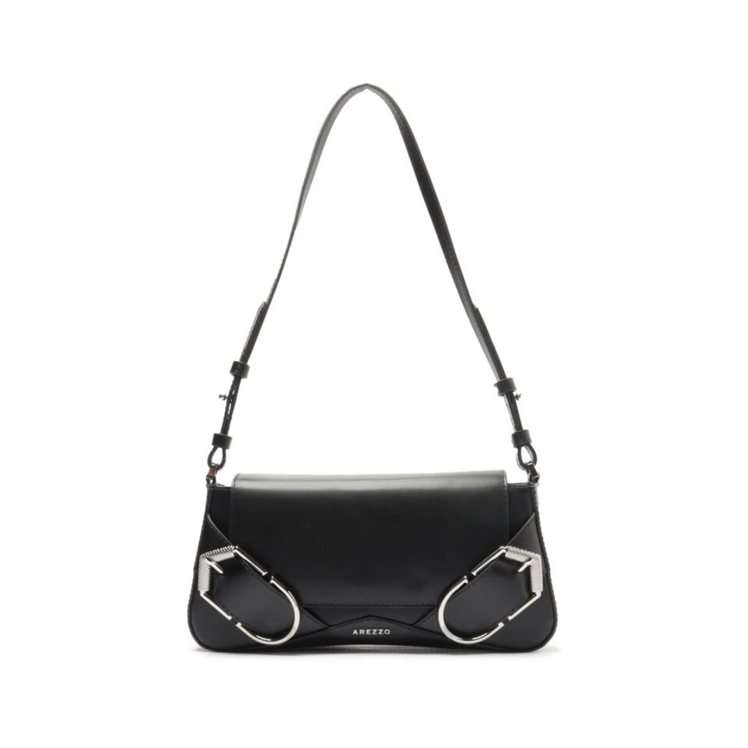 Arezzo Bolsa Tiracolo Preta Couro Pequena Maxi Fivelas