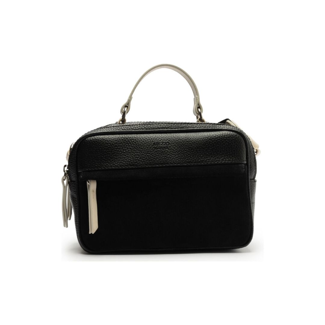 Descrição: Bolsa feminina tiracolo média preta. O acessório tem formato quadrado e estruturado. Traz alça em tira larga de gorgorão e com porta-alça. Possui alça de mão branca e dois bolsos superiores com fecho em zíper e puxadores brancos. Com bolso externo frontal acamurçado e fecho em zíper.