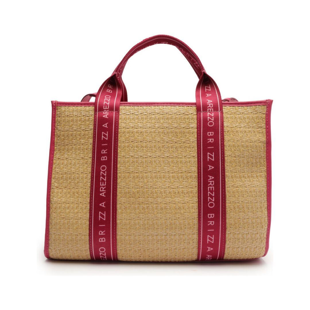 Descrição: Bolsa tote grande em palha. O modelo tem formato estruturado, capas em palha e contorno rosa. Traz alça lateral, longa e regulável e duas alças de mão em gorgurão rosa, que seguem sobre as capas em faixa de gorgurão com lettering Brizza Arezzo. Possui fecho superior em zíper e puxador.
