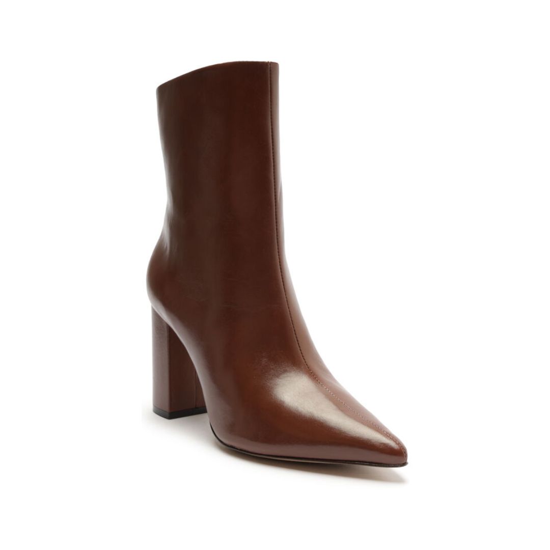 Bota Arezzo Cano Curto Bico Fino Salto Bloco Alto Marrom
