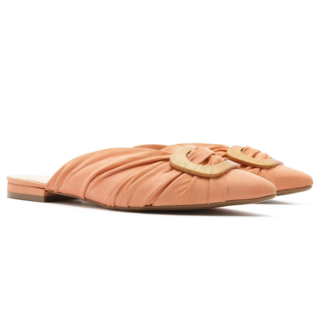 Arezzo Mule Nobuck Rasteira Fivela Madeira New Salmon