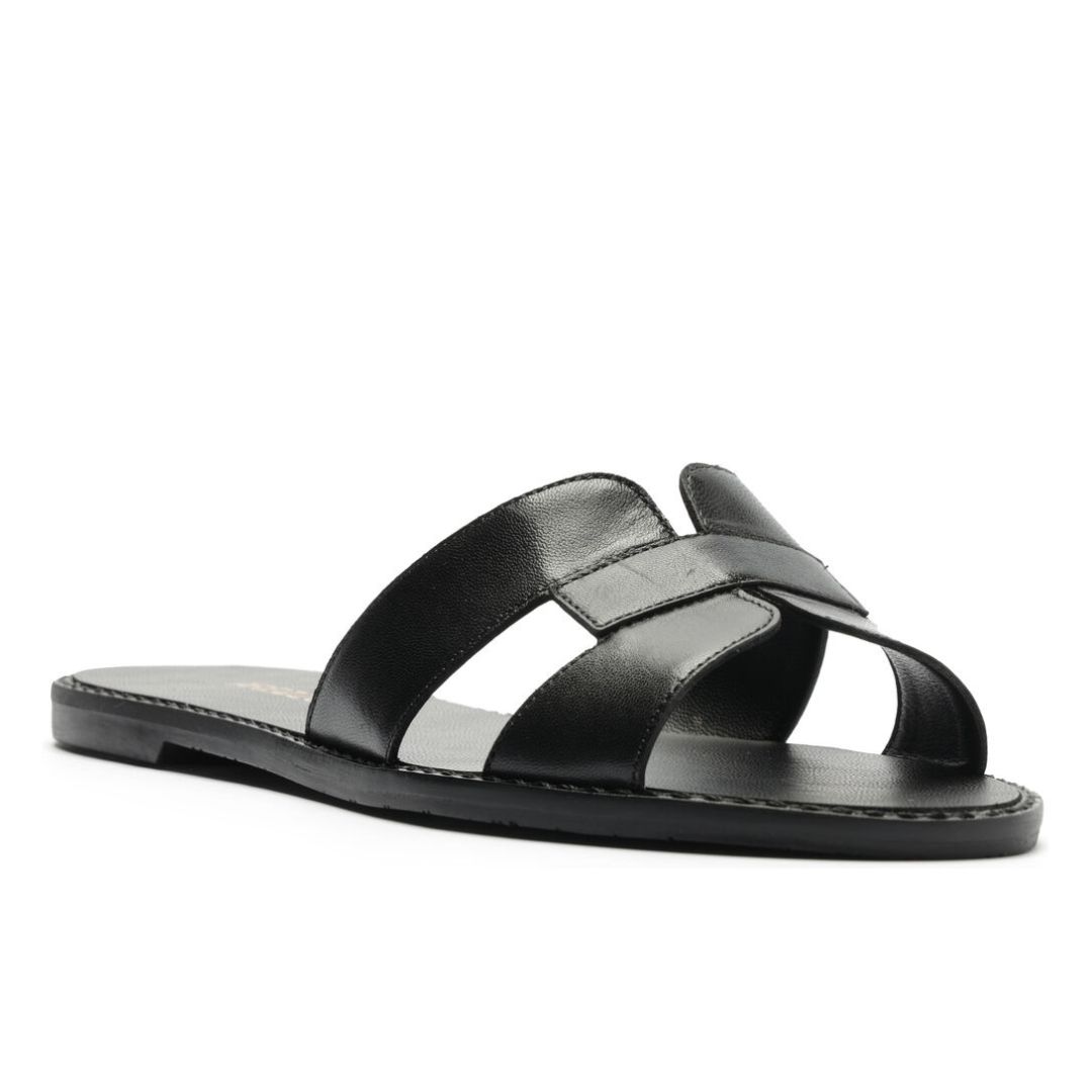 Descrição: O chinelo rasteiro em couro preto, preso só na parte frontal do pé, consegue ser chique e despretensioso ao mesmo tempo. Combine com longos em tecidos esvoaçantes ou mesmo com seu short jeans favorito. <