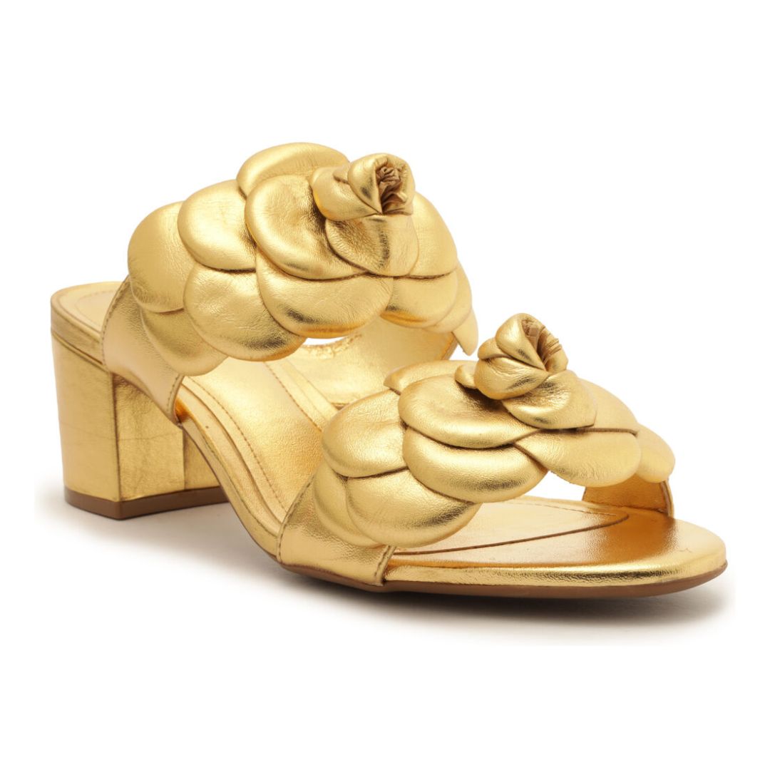 A sandália tem aplicação de flores, traduzindo as tendências da temporada, e é opção certeira para inserir um toque charmoso nas produções. Para usar do office ao passeio.