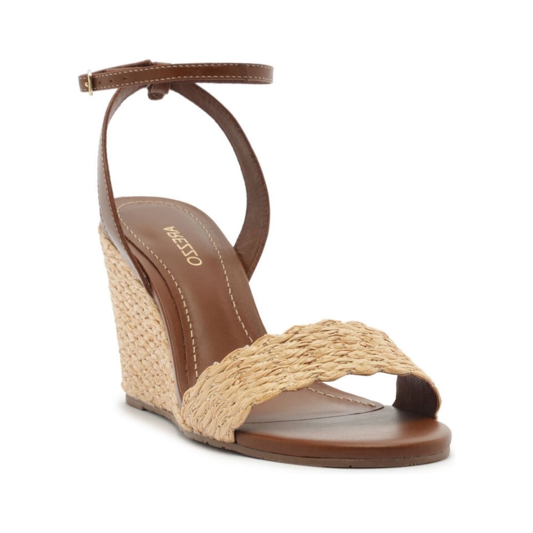Arezzo Sandália Marrom Couro Salto Anabela Palha