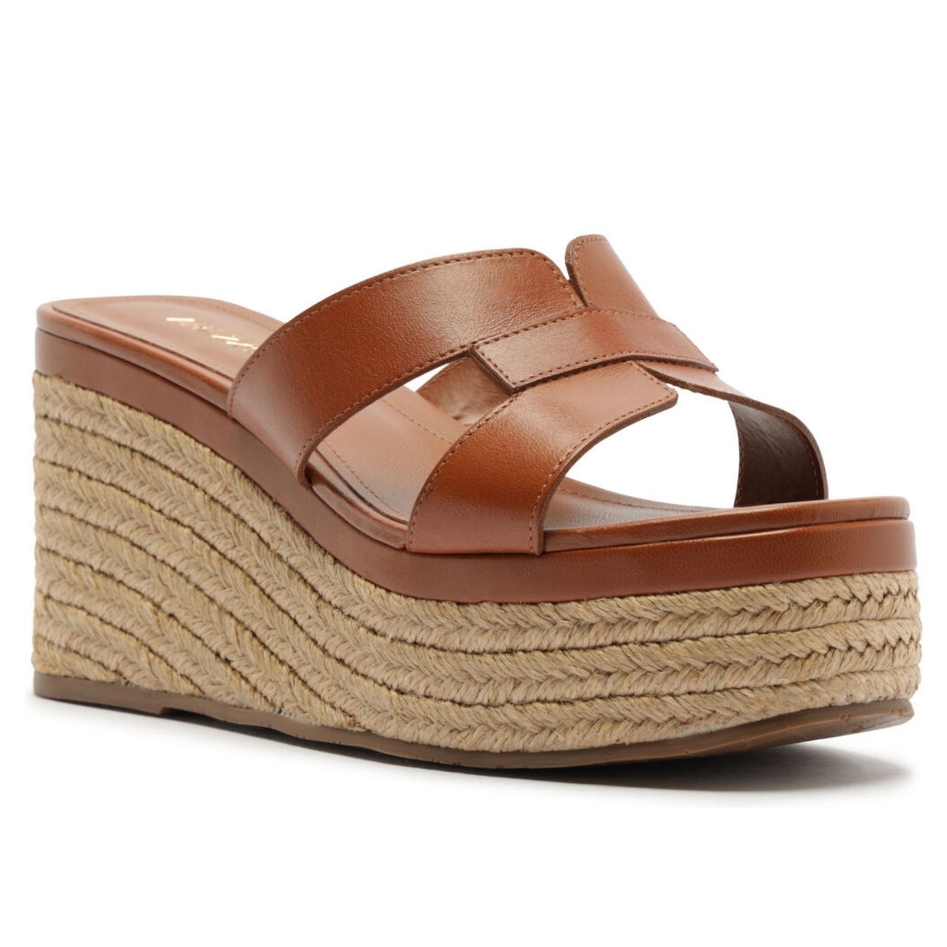 Arezzo Sandália Marrom Couro Salto Plataforma Tira Vazada