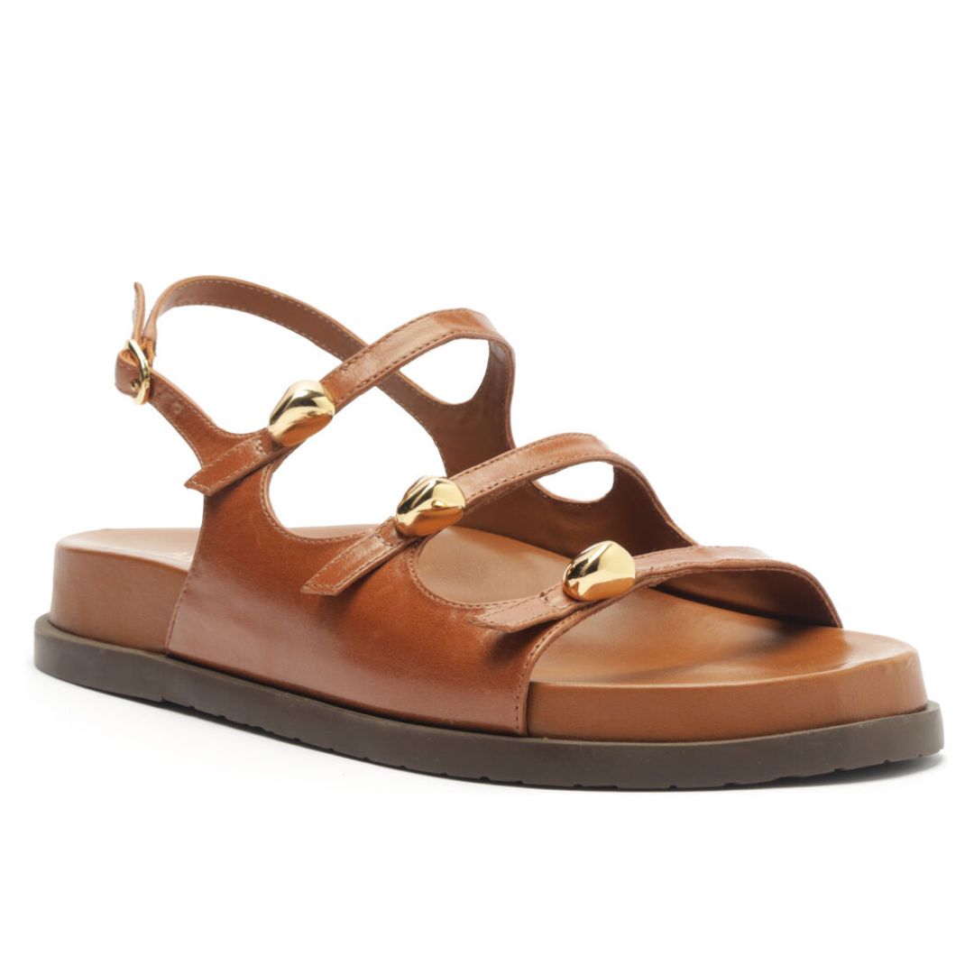 Arezzo Sandália Papete Marrom Couro Tiras Metal Bold
