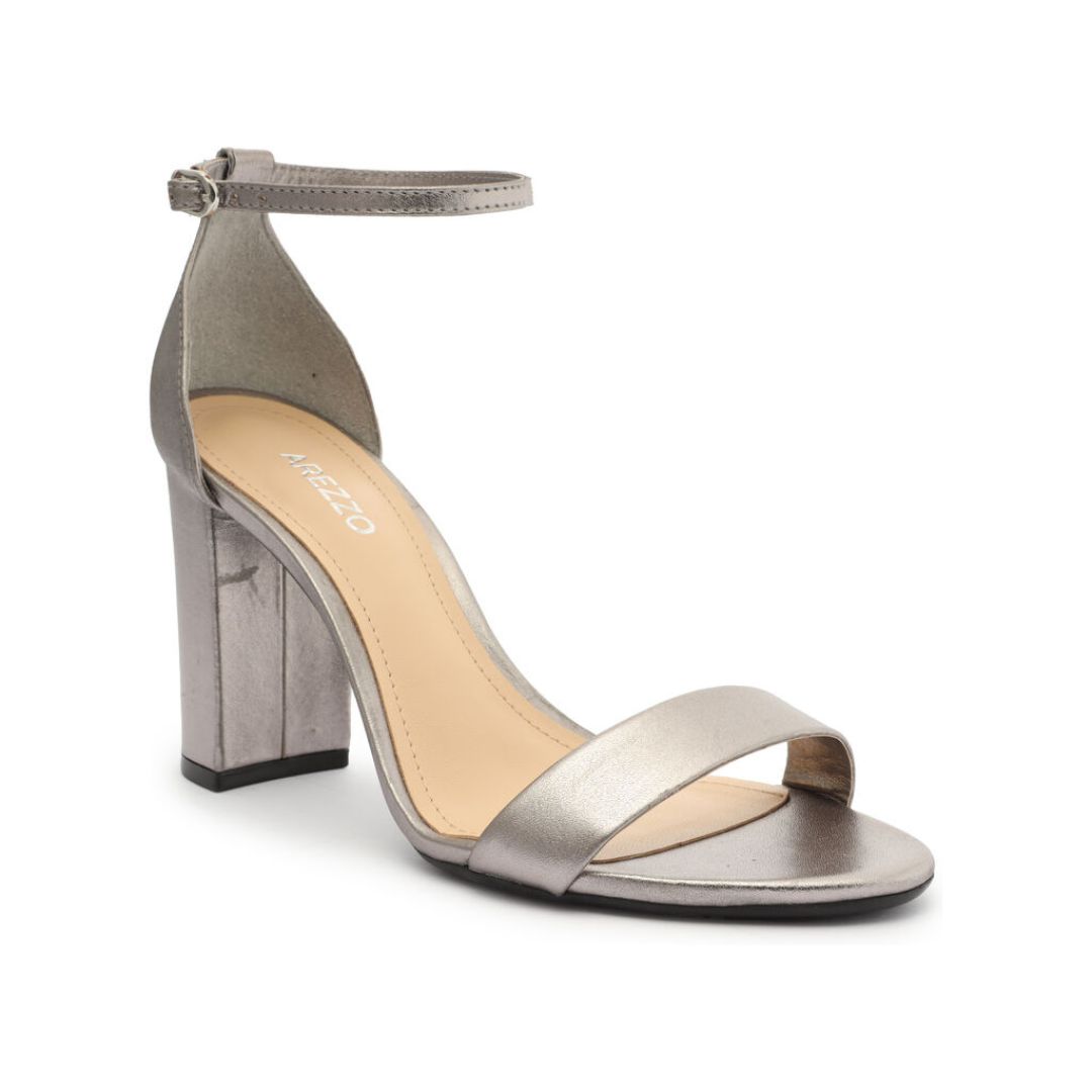 Arezzo Sandália Prata Couro Salto Alto Bloco Isabelli