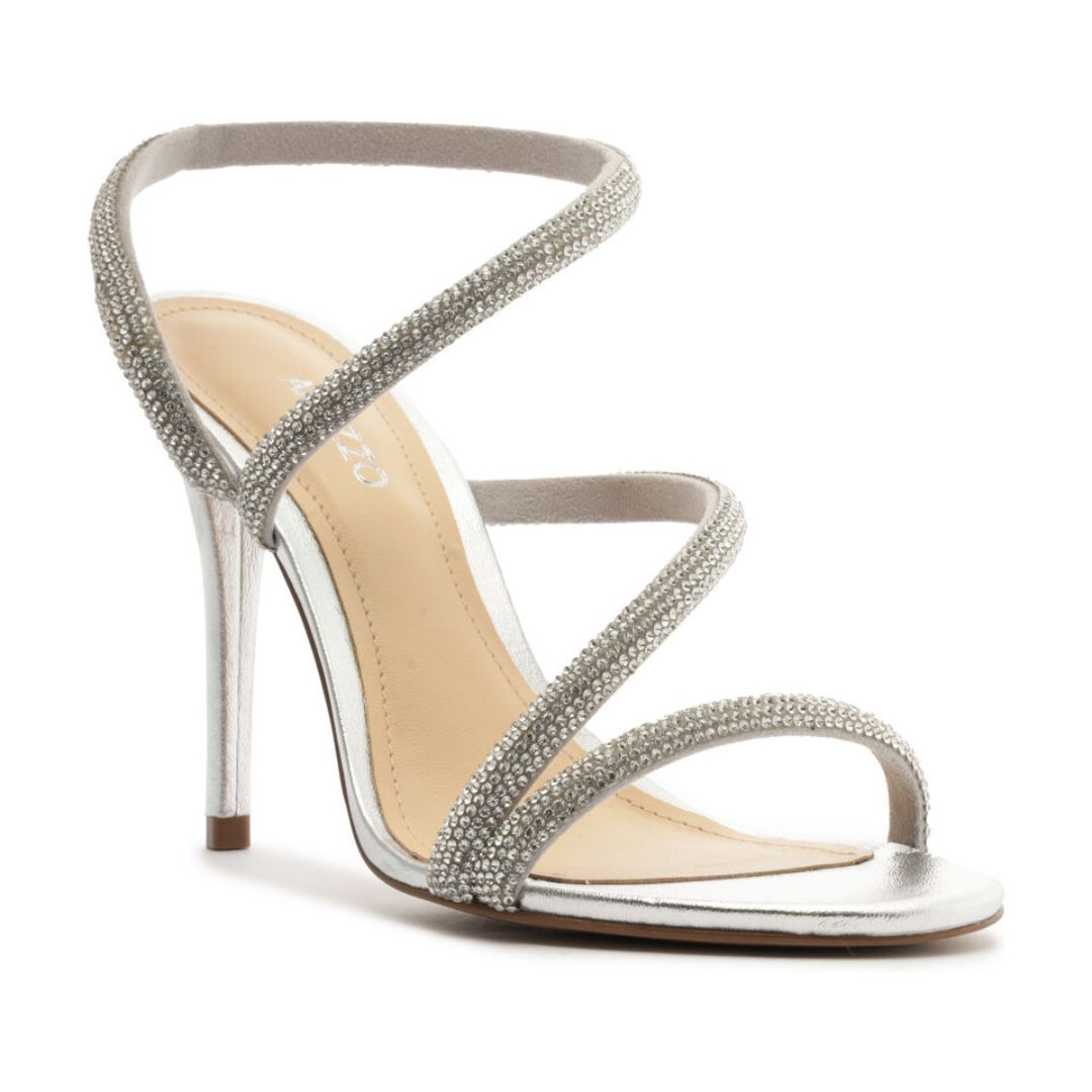 Arezzo Sandália Prateada Strass Salto Fino Tira Curva