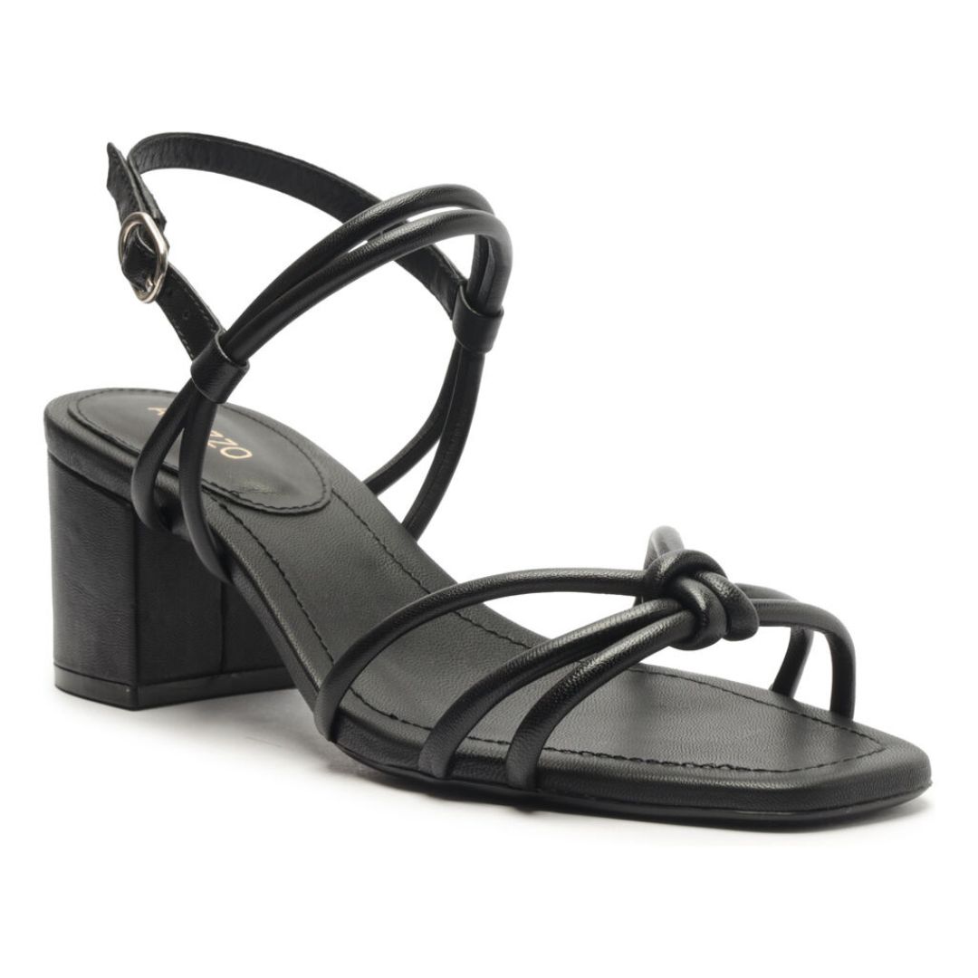 Arezzo Sandalia Preta Bloco Bico Quadrado Tiras Nó