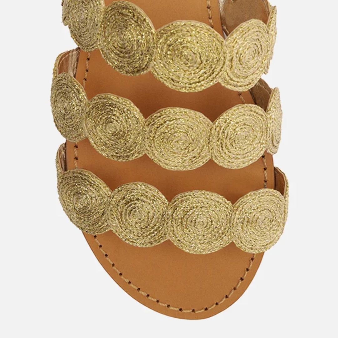 Arezzo Sandália Rasteira Dourada Bordada Tiras