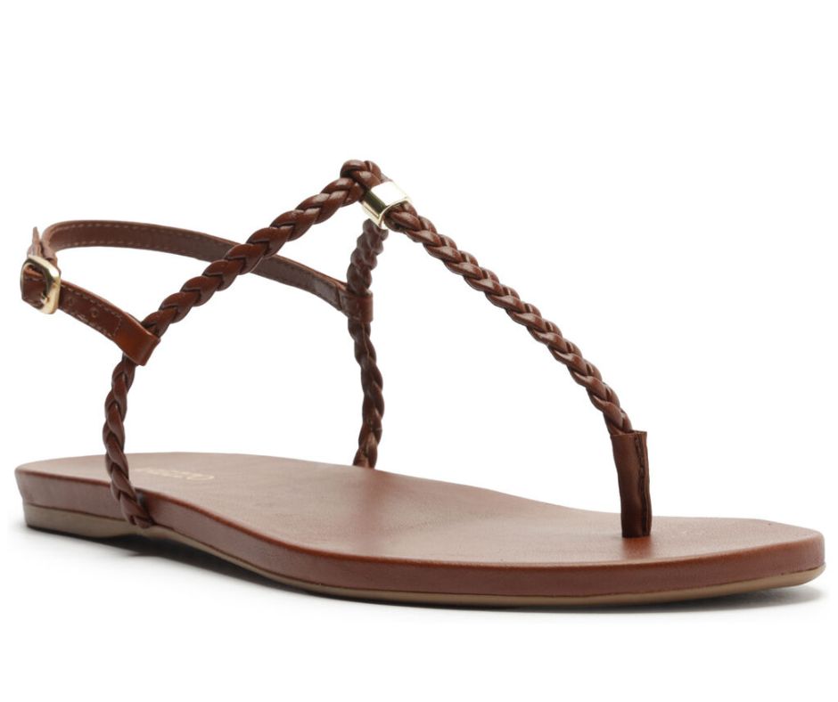Arezzo Sandália Rasteira Marrom Slim Tiras Trançadas
