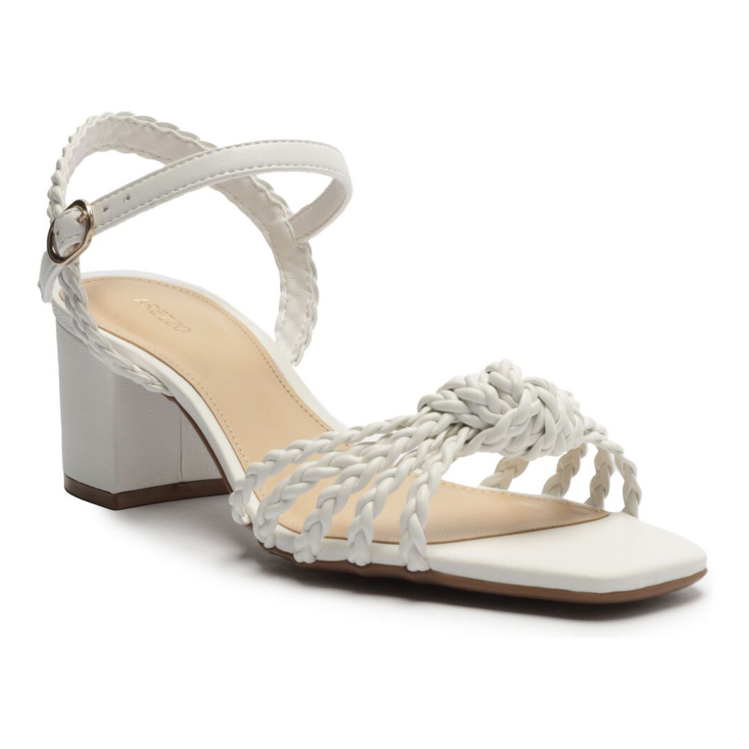 Arezzo Sandália Branca Salto Bloco Tiras Trançadas Nó