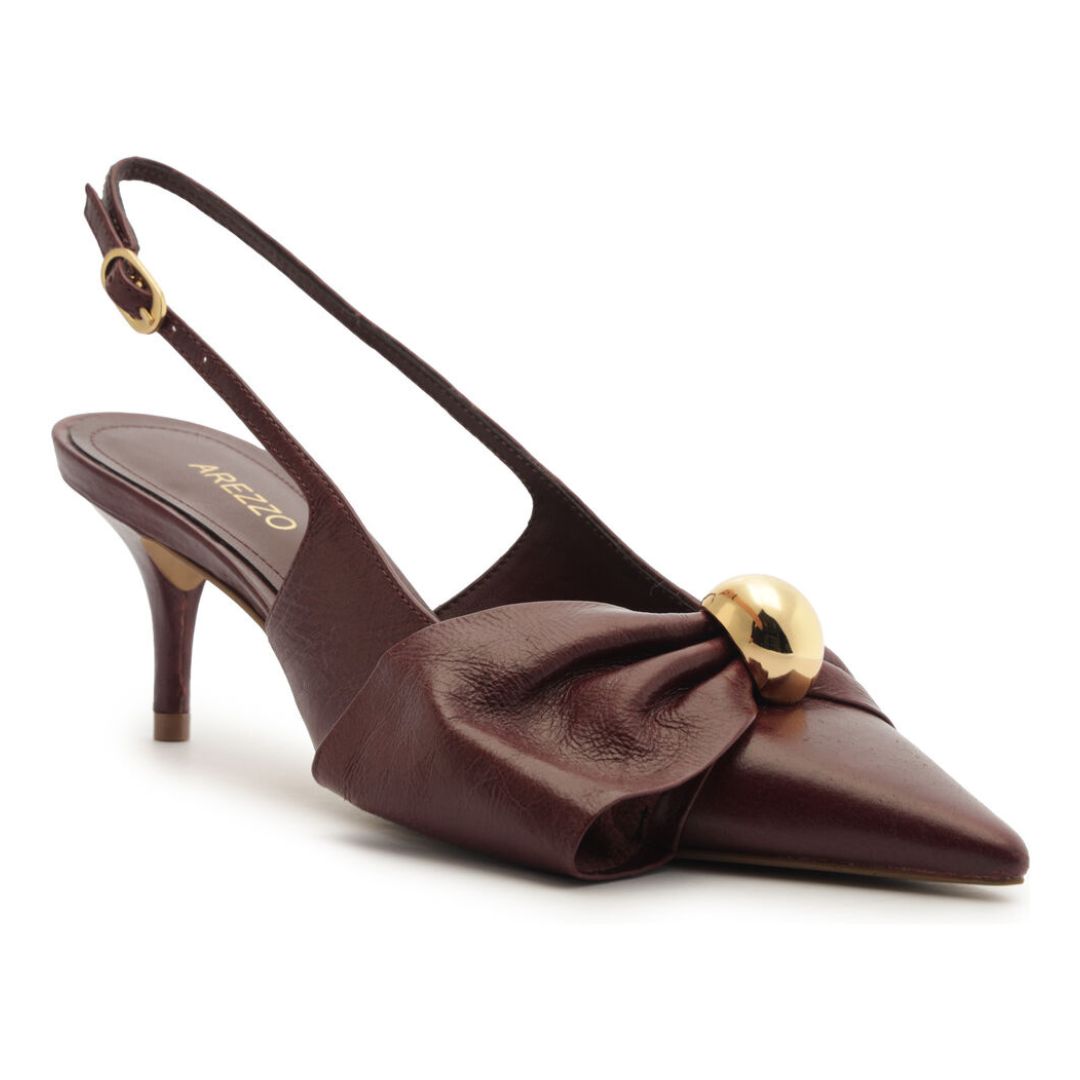 Arezzo Scarpin Couro SlingBack Laço Metal Vinho