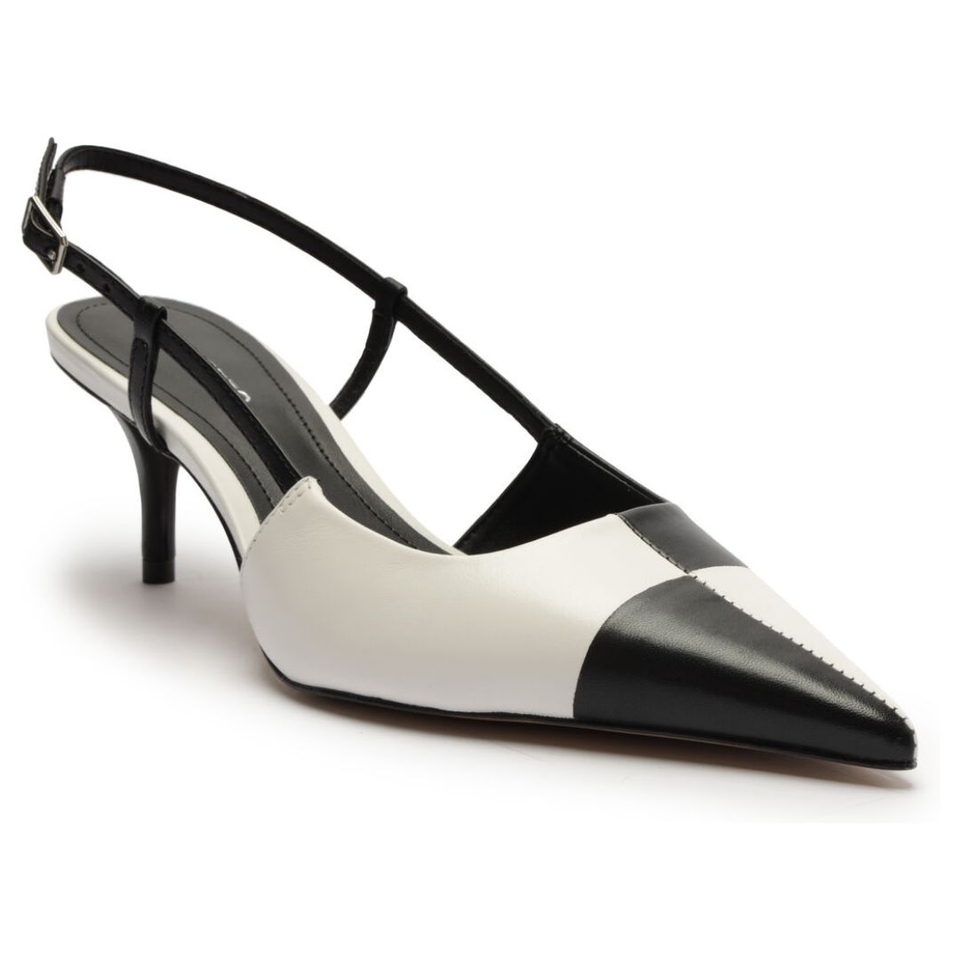 Arezzo Scarpin Preto Couro Bico Fino Slingback Bicolor