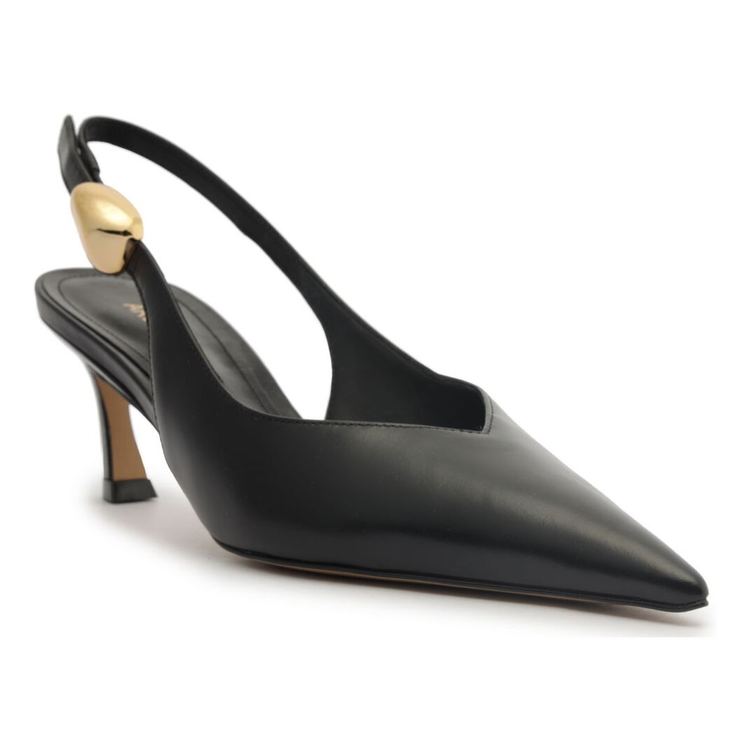 Arezzo Scarpin Preto Couro Salto Kitten Metal