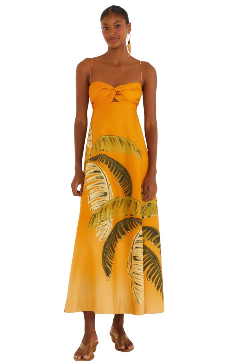 Farm Vestido Estampado Itacaré Coqueiro Laranja 346609