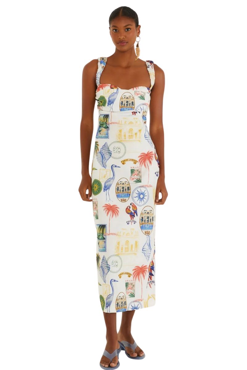 vestido estampado tropical vintage. com alças largas e decote quadrado que traz um toque de frescor, a peça é perfeita para dias ensolarados. a modelagem reta confere conforto e mobilidade, tornando-a ideal para passeios casuais e encontros ao ar livre. tecido leve e respirável que acompanha seus movimentos.