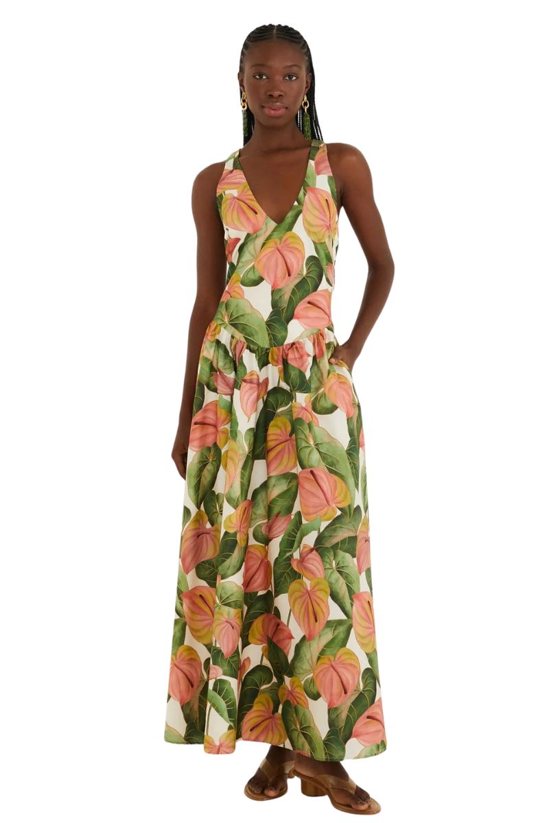 Farm Vestido Longo Estampado Antúrio Corrido 346382