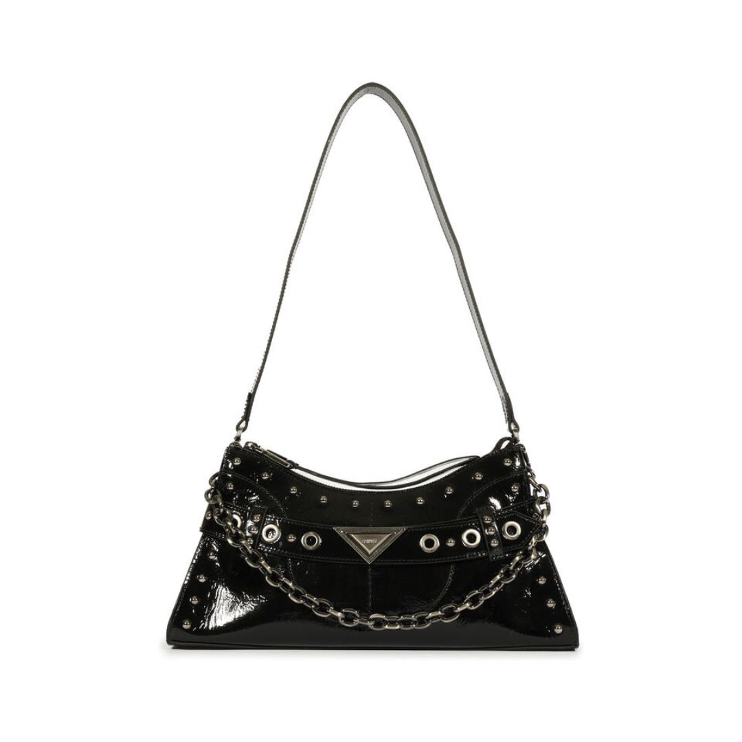 A combinação perfeita entre estilo e atitude. Essa bolsa de couro verniz com detalhes em metal e corrente é a escolha perfeita para mulheres que amam o estilo rock chic. Seu design moderno e versátil permite que você use tanto em produções mais casuais quanto em ocasiões especiais.