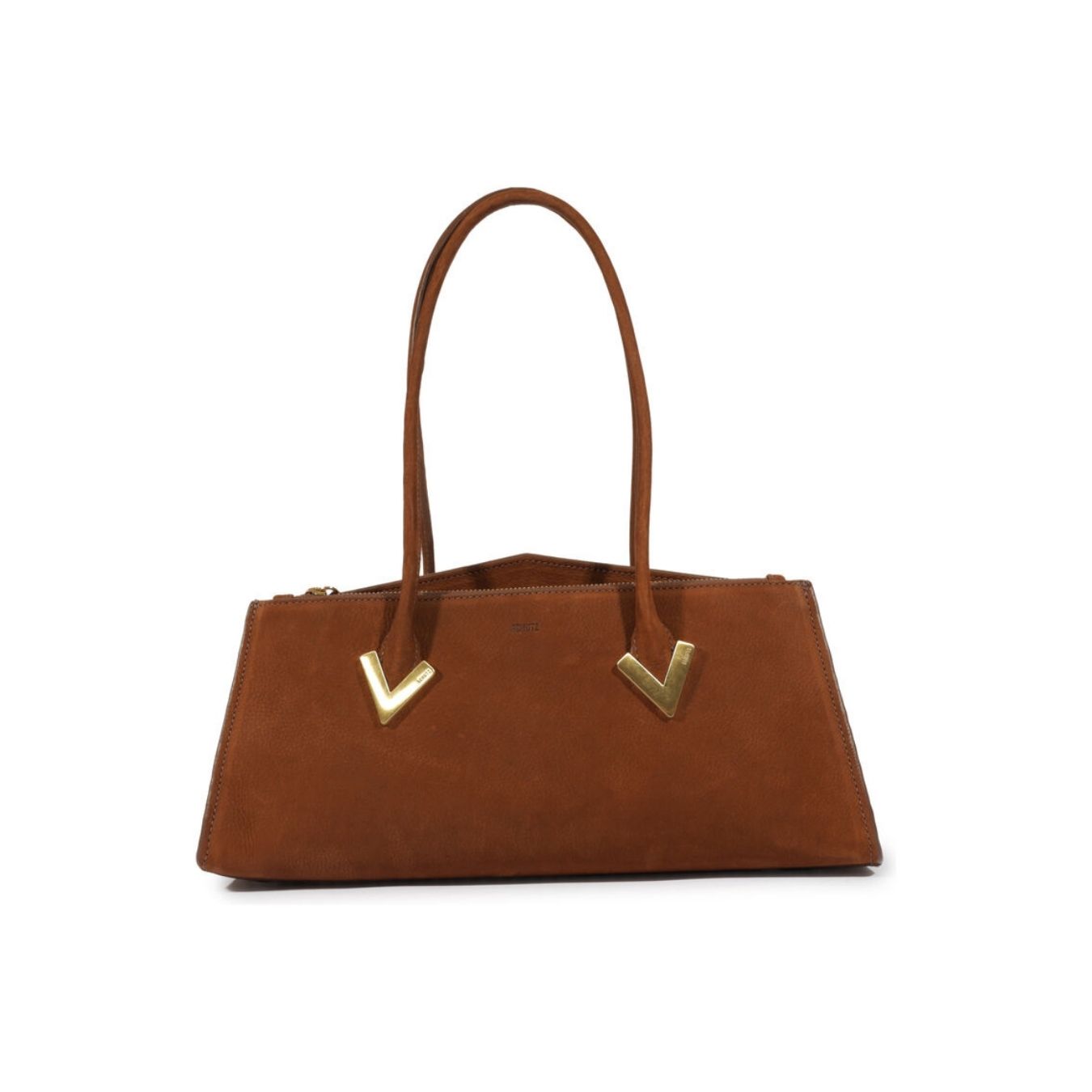 Sofisticada e moderna, esta bolsa tote marrom em shape baguete traz um visual supercool e refinado! Trazendo um exclusivo com acabamento em camurça, ela traz um ar contemporâneo e elegante. Os detalhes dourados em shape Triangle na base da alça adicionam um toque de luxo discreto, enquanto o fechamento por zíper garante praticidade. Conta ainda com alça tiracolo opcional e ótimo espaço interno. Aposte! Comprimento da alça: 24 cm | Largura da alça: 1 cm