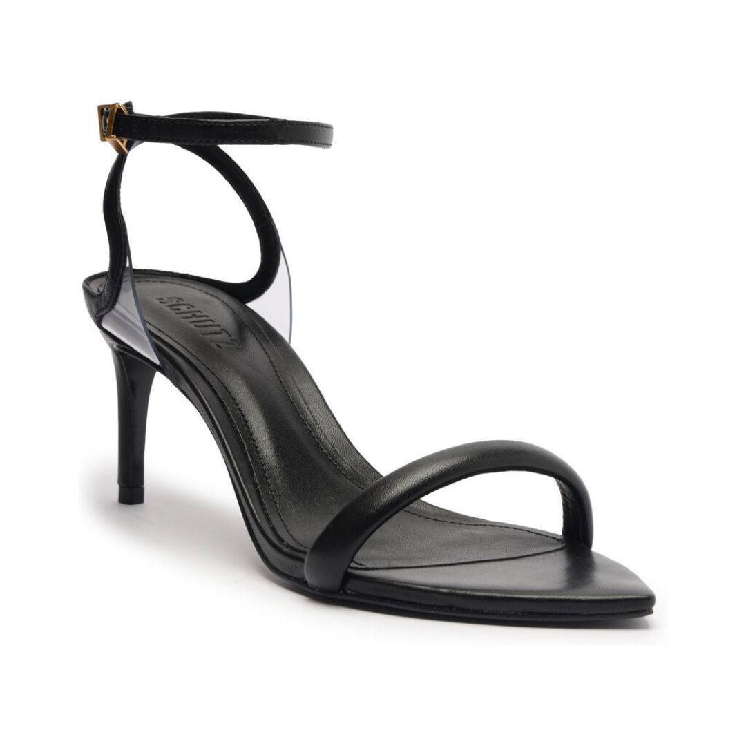 Schutz Sandalia Skye Leaf Couro Salto Medio Preta