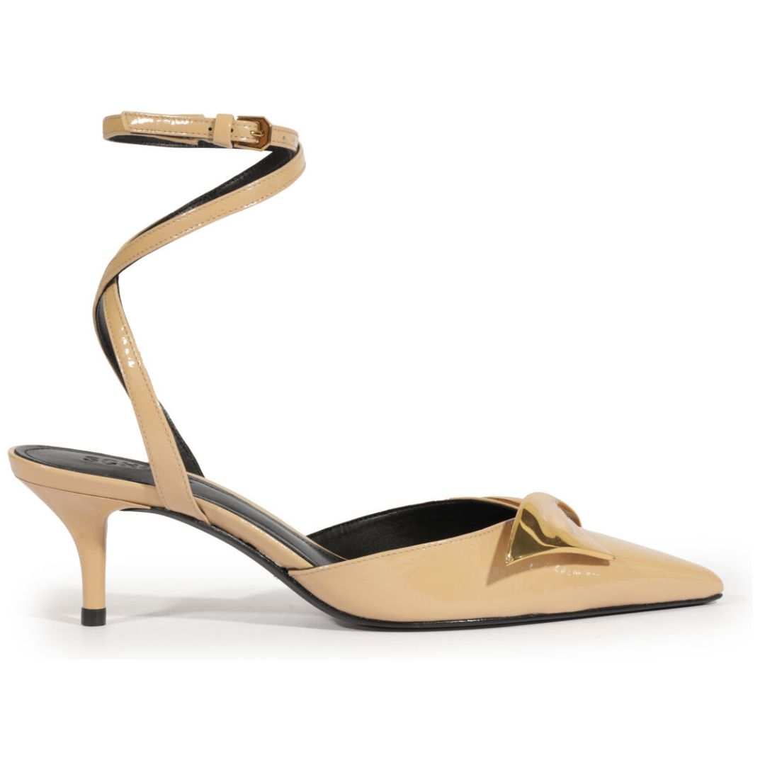 Schutz Scarpin Salto Baixo Couro Verniz Nude